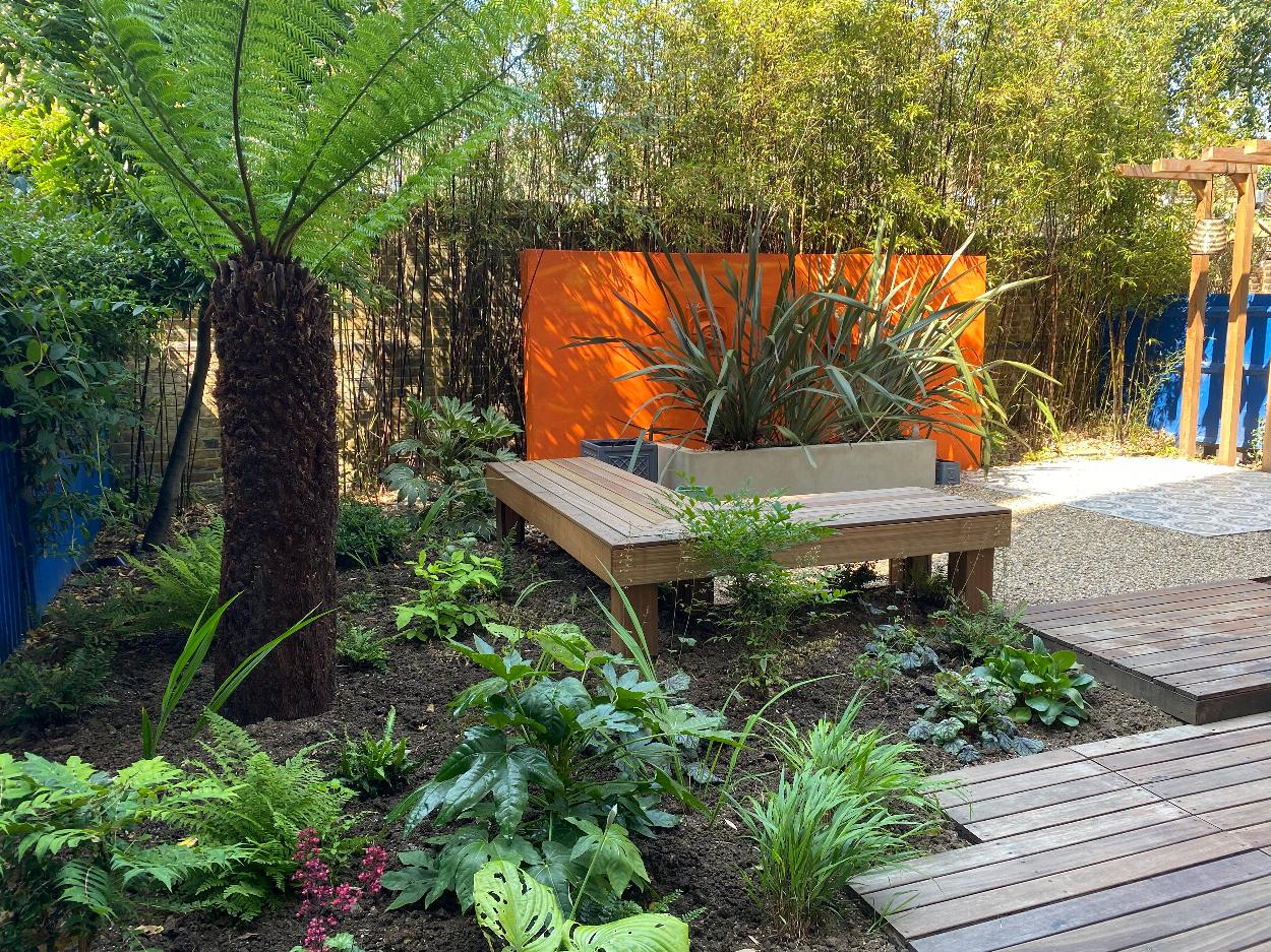 The design embraces the garden's naturally shaded conditions, introducing layered planting to create depth and texture. A refined selection of materials, furniture, and foliage harmoniously blend to form a serene, verdant space that feels both intimate and inviting throughout the year.